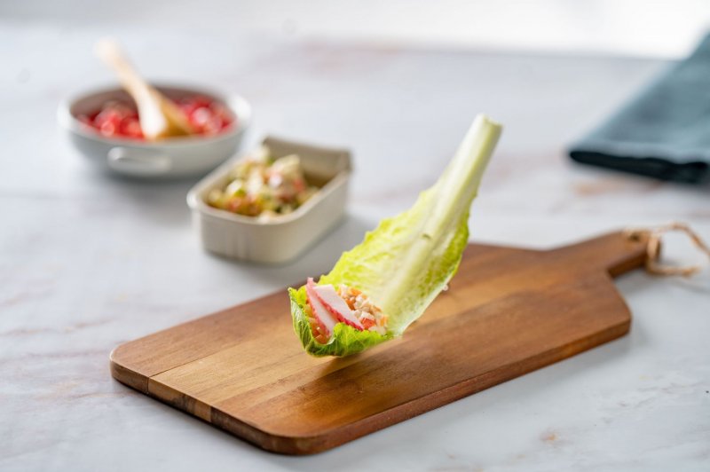 - Wir mischen alles gut, geben unserem nordischen Salat die gewünschte Form und verzieren ihn mit Sweet Palermo Paprika in Brunoise.